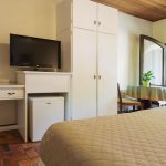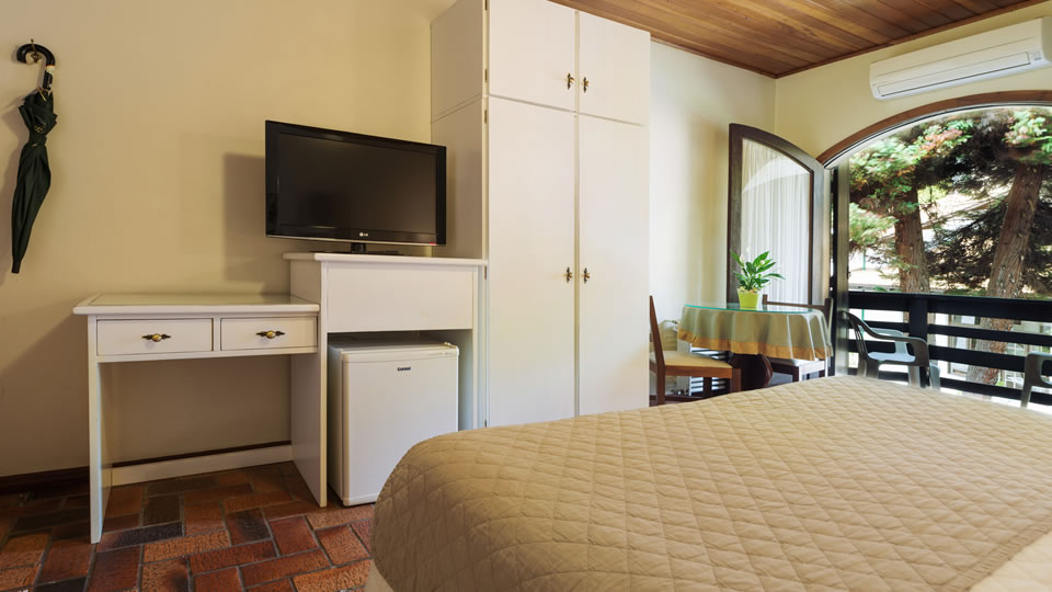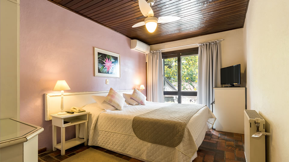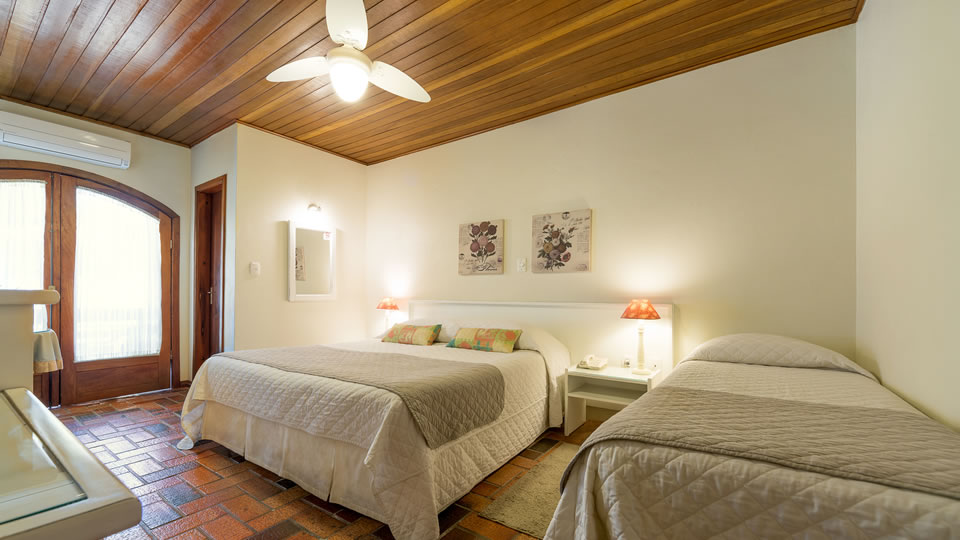 O nosso apartamento é ideal para duas pessoas. Possui cama de casal ou duas camas de solteiro. Dispomos de algumas unidades um pouco maiores, que acomodam três pessoas, distribuídas em cama de casal e uma de solteiro ou três camas de solteiro.